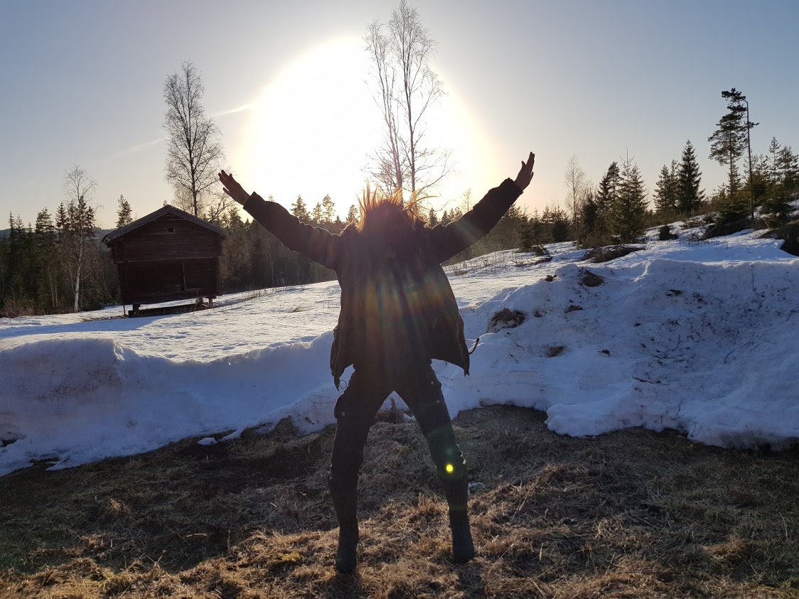 Lyckliga tomtägare börjar med att göra en eld på gården och tar sig en korvlunch. Lite lätt glada kan man minst säga att vi var. Dock fortfarande en massa snö i April.