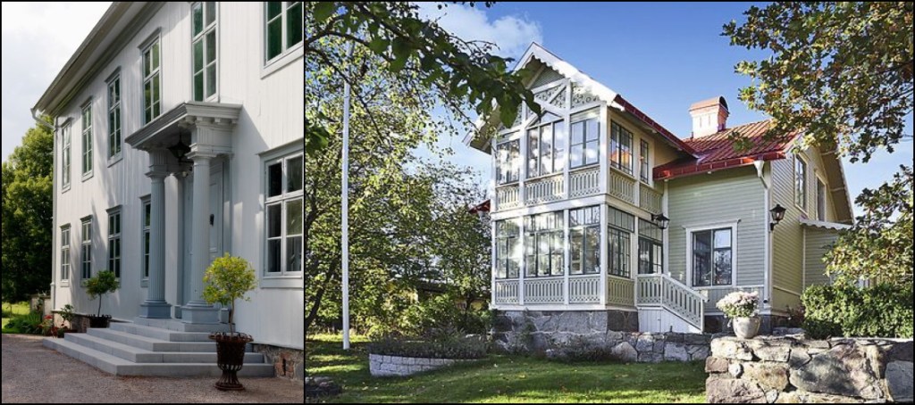 Våra husknutar är inspirerad från en inomhus bild men tycker att den ger mer den karaktären på huset jag önskade från början. Se sista bilden till vänster för hur jag önskade husmodell. Nu finns det inte många hus från denna tid som vi försöker efterhärma. Husets karaktär är lite mellan två skeden i arkitekturhistorien. Den breda raka grova panelen är en senare tid men formen och balkongen är en mera tid mot det industriella smala panelerna med stående liggande och stående panel igen.
